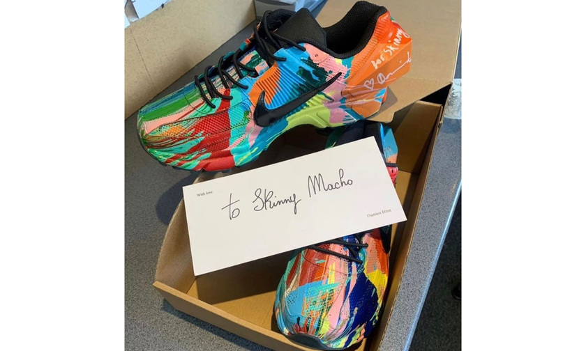 A-COLD-WALL* 与 Nike 打造的 Zoom Vomero +5 相信很多朋友都有印象,其中两款采用做旧处理和手工染色工艺呈现的特别版本,着实震撼了不少人。此番,艺术家 Damien Hirst 也以这款联名为基础,进行了惊艳创作。