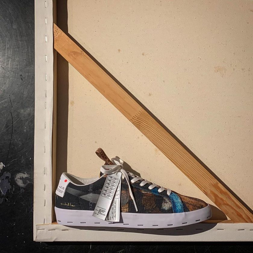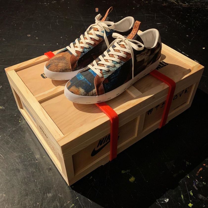 中国香港玩偶艺术家 Michael Lau 最近携手 Nike 带来了联名新作。本次联名以 Nike SB Blazer Low 为蓝本打造,鞋面采用拼接帆布呈现,类似油画的图案极具艺术气息。此外,较为特的是中底的订书钉设计,象征着将绘画画布安装到框架上的情景。搭配独特的鞋舌和后跟标签以及特别打造的鞋盒,凸显出细节设计的巧妙。据悉,这一系列将于 8 月 18 日在上海 CONCEPTS 以及 Fly 店铺举办发布会,感兴趣的朋友可以关注一下~