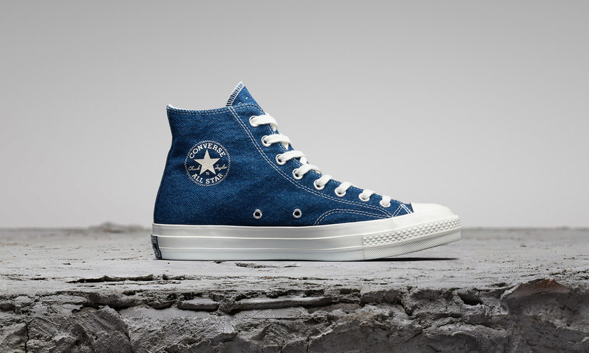 在以环保为流行趋势的当下,回收再造已经是一种潮流,最近 CONVERSE 与英国老牌古着店铺 Beyond Retro 合作,带来了 Renew Denim 系列。这一系列以创新的理念变废为宝,将旧牛仔裤回收重新裁剪再造,打造成独一无二的丹宁 Chuck 70 。