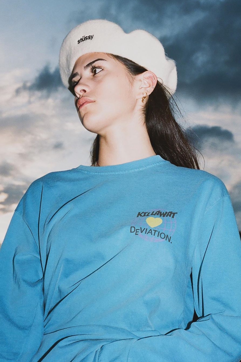这次系列以长袖 T 恤作为主打,目前曝光的有天蓝色、黑色两款单品。正面 Deviation logo 与背面大幅印花呼应,此外还注入了狂欢节海报图案、Deviation” 字样 logo 以及 Stüssy 标志 Double S logo ,细节丰富。