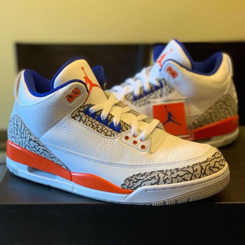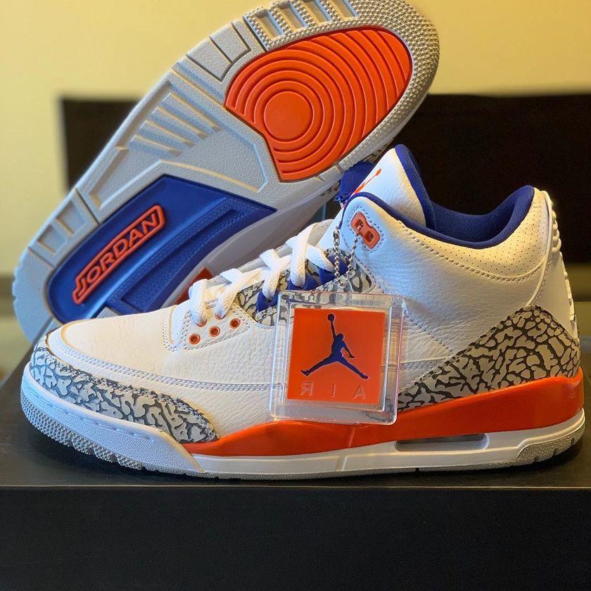 近期Jordan Brand推出一款Air Jordan 3的全新配色颜值颇高,相当值得大家关注。鞋身整体采用尼克斯主题配色,白色的荔枝纹皮革,橙色点缀外底和鞋舌刺绣、鞋带孔等多处细节,蓝色则在内衬做了相应的修饰。