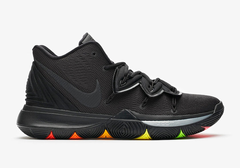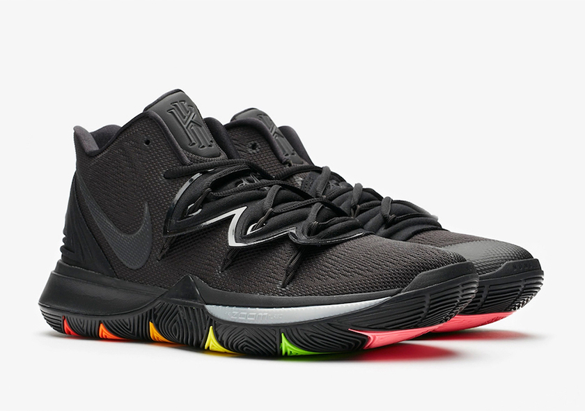 最近凭借《海绵宝宝》联名大受欢迎的 Nike Kyrie 5 又有新配色释出了。这次的配色和首发配色有点相似,鞋身都以低调沉稳的黑色演绎,标志性捕蝇草设计泛着光泽。