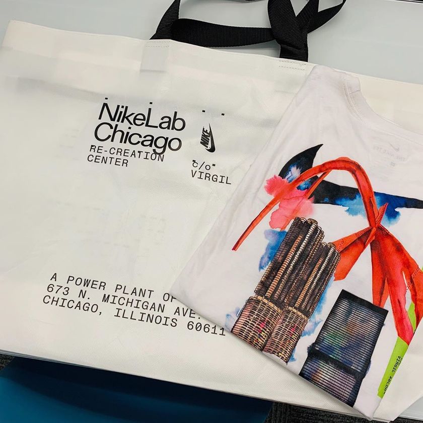 此外,这款联名还带有一款独特的购物袋,购物袋包含“NikeLab Chicago” 、 “VIRGIL ABLOH” 等多重文字元素,尽显 Virgil Abloh 风格。