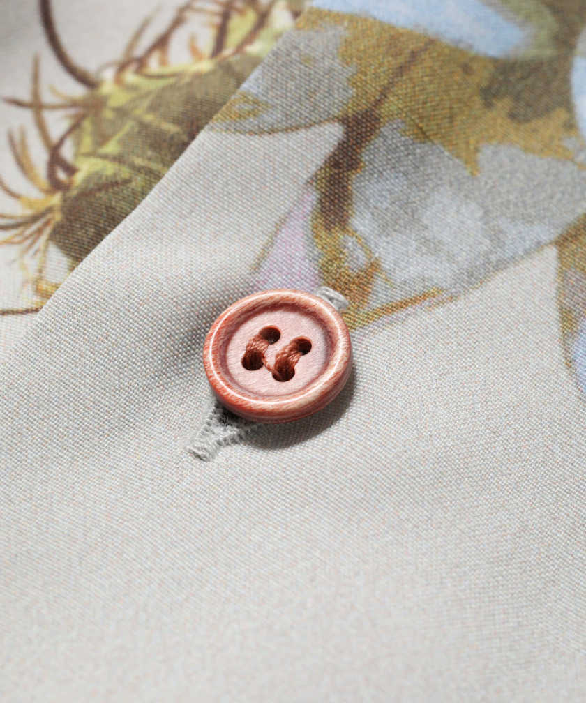 这两件单品分别采用蓝紫色和米白色为主基调,以多样的仙人掌造型印花呈现出夏日自然风光。宽松的版型和精致的做工可以看出本次联名的用心。