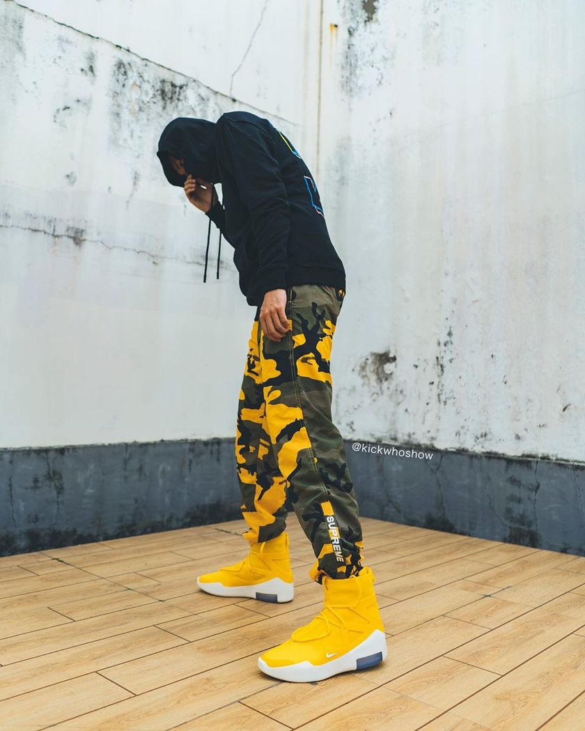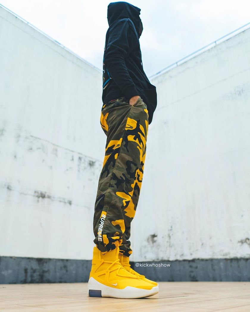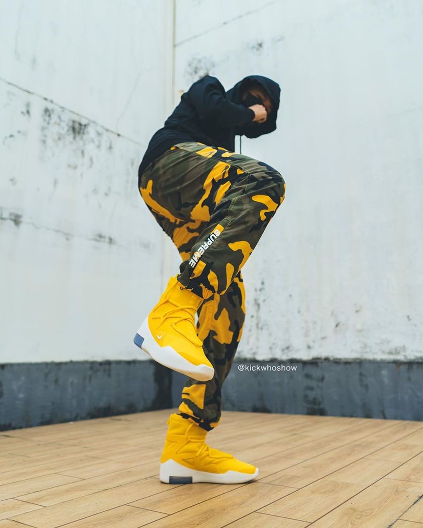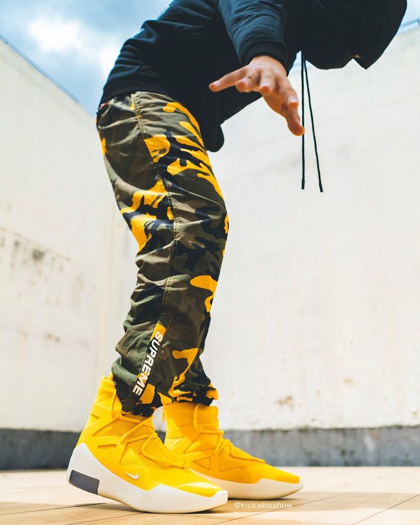 而近日,Air Fear of God 1 “Amarillo” 的发售信息,还是没有更新~但球鞋爆料账号 @kickwhoshow 释出了上脚美照,喜欢的朋友可以过过眼瘾了。