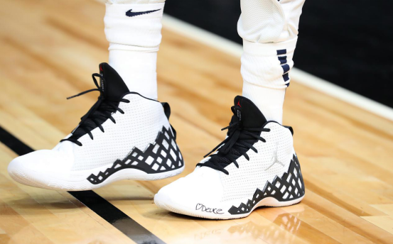 说到Air Jordan 10,想必很多球迷都不难联想到肯巴·沃克——这位凯尔特人的新核最爱的实战鞋款正是经典的AJ10,这一次出征世界大赛,肯巴也为我们展现了来自复古的极致魅力。简约的设计风格,优雅的白色主调,加上一抹深邃的黑蓝色作为点缀,令人印象深刻。