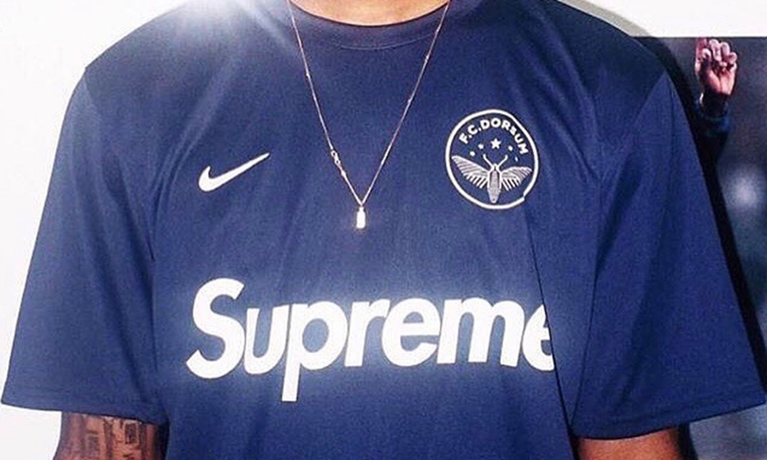 虚拟足球俱乐部 Nike F.C. Dorsum 相信不少朋友都听说过,近日一款其与 Supreme 的联名 T 恤在 ins 上曝光了。该联名款以 F.C. Dorsum 初代 T 恤为蓝本设计,深蓝色基调上除了 Nike Swoosh 和 F.C. Dorsum 的专属队徽外,还有反光 Supreme logo 印花,辨识度极强。目前这款 Supreme x Nike F.C. Dorsum 联名单品尚未释出发售信息,感兴趣的朋友可以关注一下。
