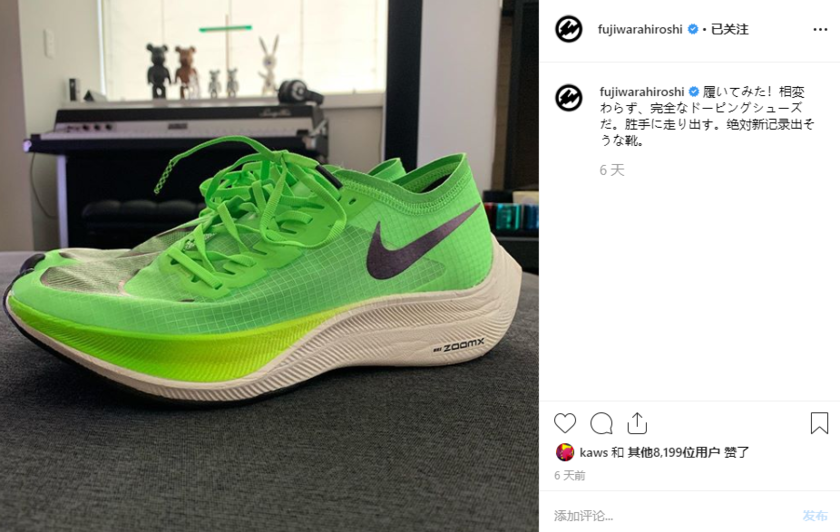 值得一提的是,此前藤原浩也在 ins 上夸过 ZoomX Vaporfly NEXT% ,所以很可能本次是双方的又一联名大作。