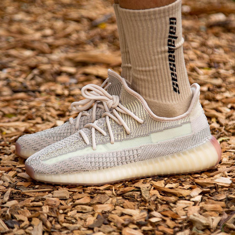 延续 Yeezy Boost 350 V2 一贯的造型,这款“Citrin”也保留了侧透元素和无鞋提设计。由黄、灰、浅黄等多种色调拼接而成的鞋面极具复古气息,上脚效果也非常不错,很适合秋季穿搭。