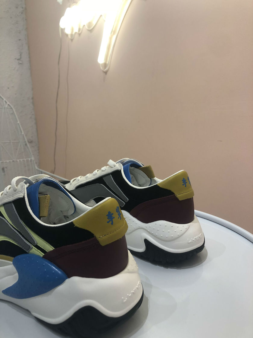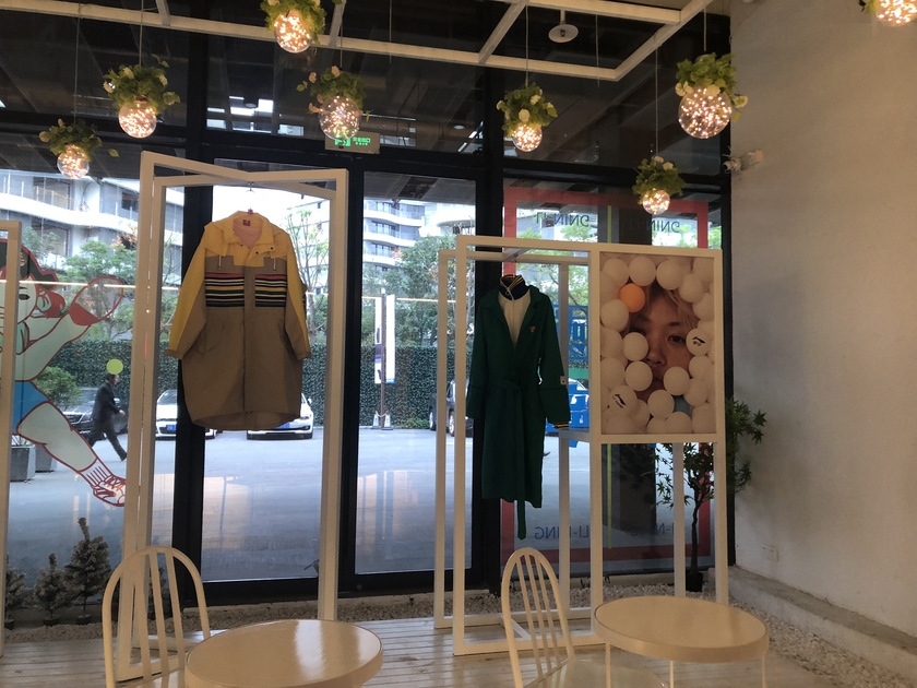 从国球乒乓等运动吸取灵感,突破常规采用 2D 抽象的点界面为设计元素,醒目的撞色前卫又让人过目不忘。
