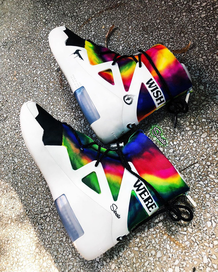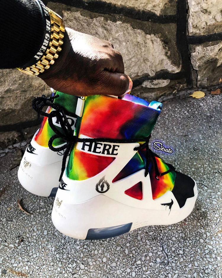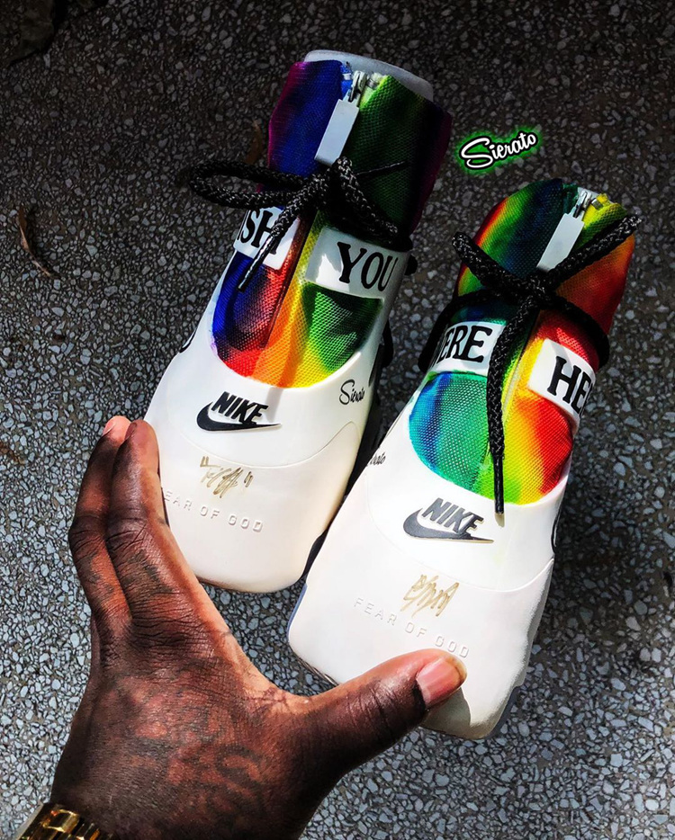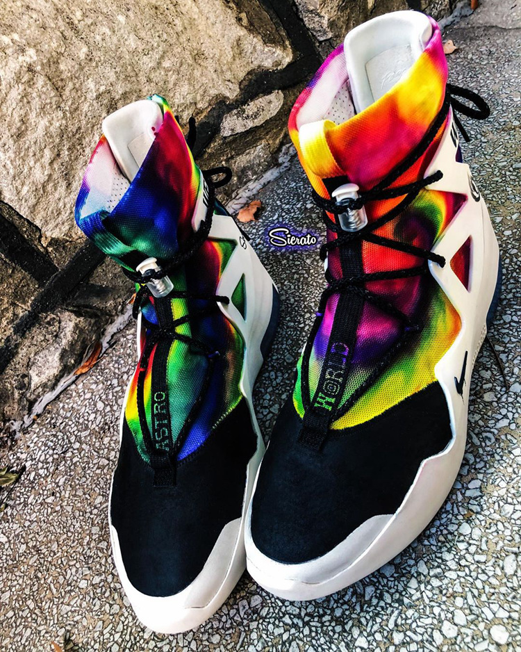 近日,以价格不菲的 Nike Air Fear of God 1 为蓝本,美国手绘球鞋玩家 sierato 带来了一款彩虹扎染定制版球鞋。这款定制版 Air FOG 1 也是为了致敬 Travis Scott ,鞋款中注入了许多他的元素。