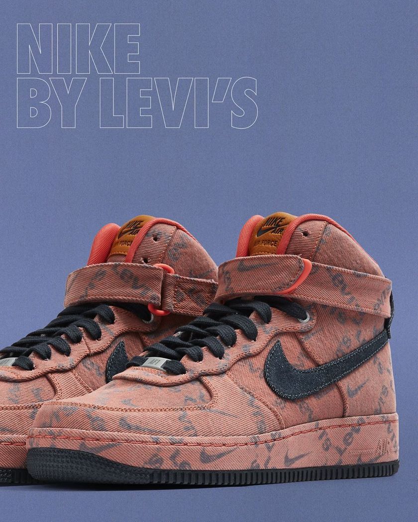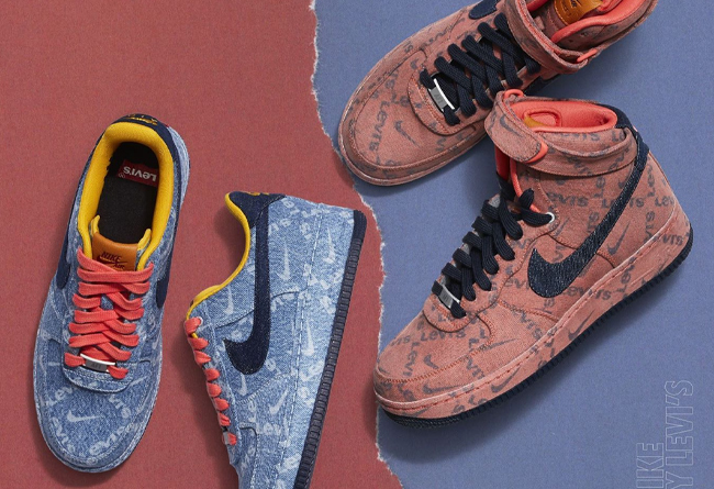 本次发售的联名包括一款高帮和一款低帮,两款均采用布满 Levi's logo 和 Swoosh 的丹宁材质打造,撞色拼接,视觉效果极其醒目。此外,鞋垫上也点缀了标志性的 logo ,联名标识真的无处不在,辨识度极强。