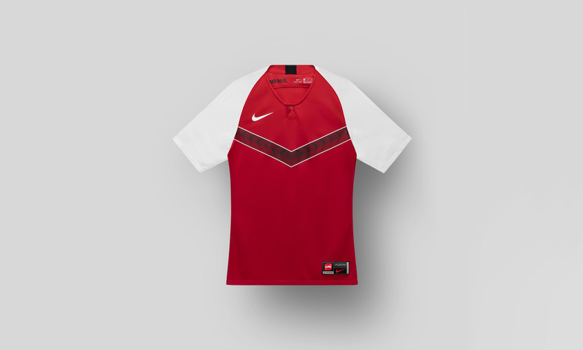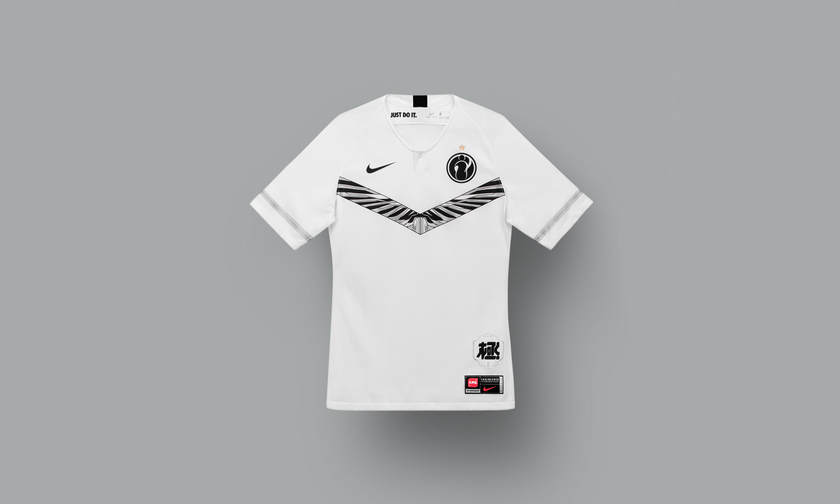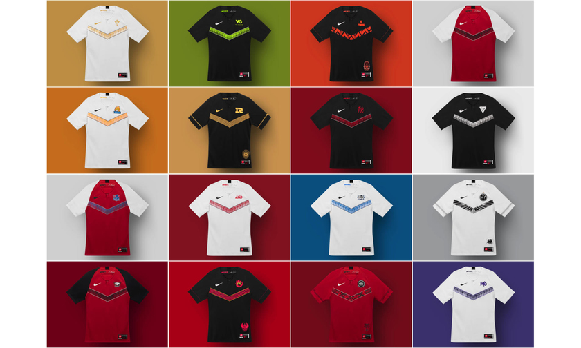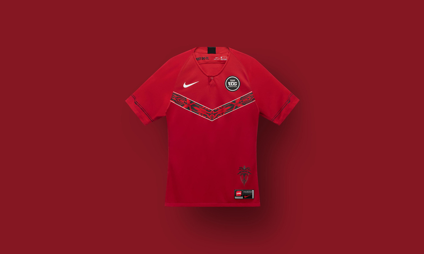 每款队服上都印有极具辨识度的专门定制的队标 logo 和 Swoosh logo 。而纹理不同的V 形图案则是致敬召唤师峡谷,象征着运动和团队合作。