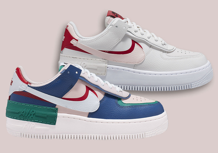 一款配色采用简单的白色和红色细节点缀呈现,另一款则融入了红白蓝绿粉多种色调。两款配色在设计上都采用了重叠 Swoosh ,鞋舌、鞋帮、后跟处部分细节带着浓浓的解构风格,潮流气息很足。