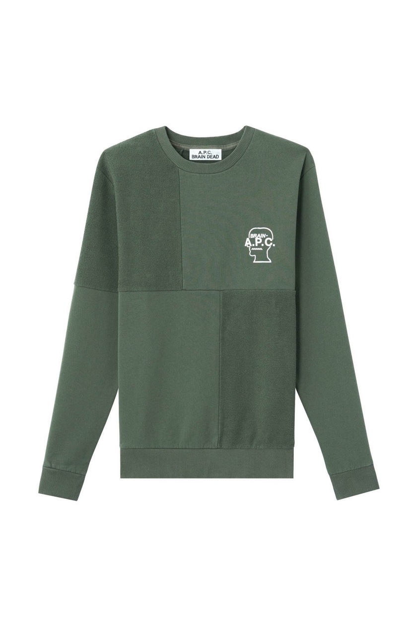 拼接设计以及极具辨识度的注入了 A.P.C logo 的 Brain Dead“脑洞大开” 元素,让这一系列呈现出极简街头风,简直趣味性爆棚。