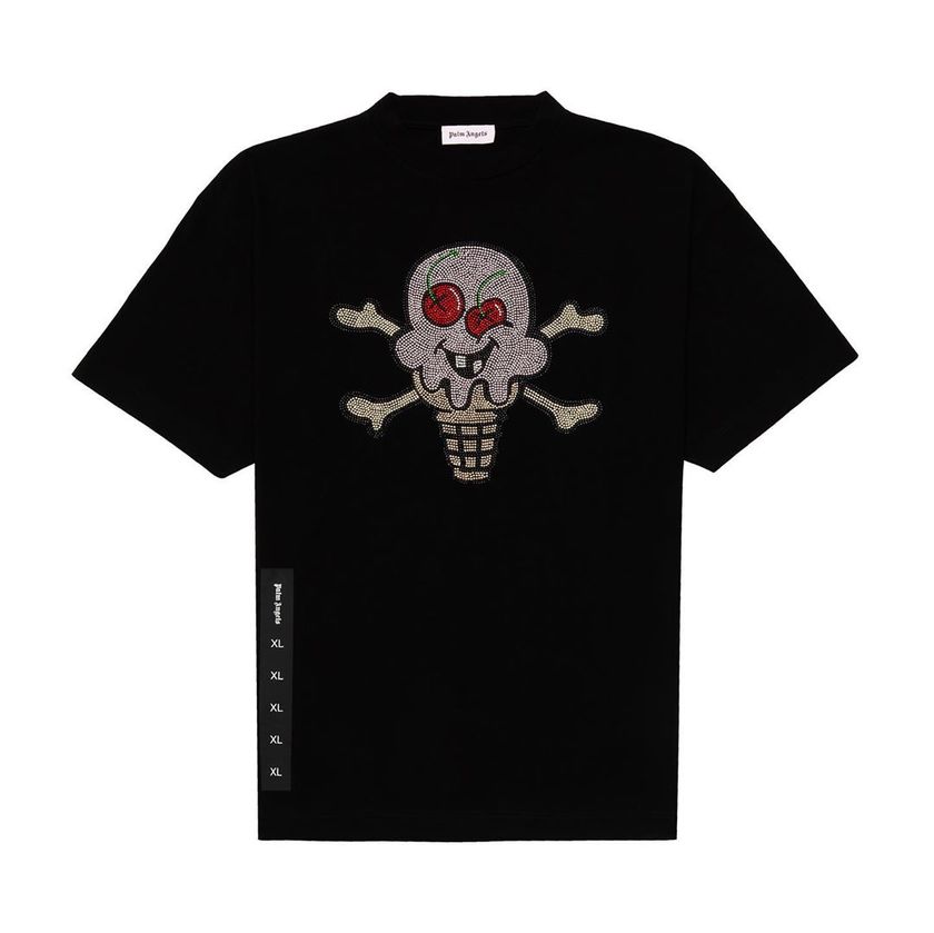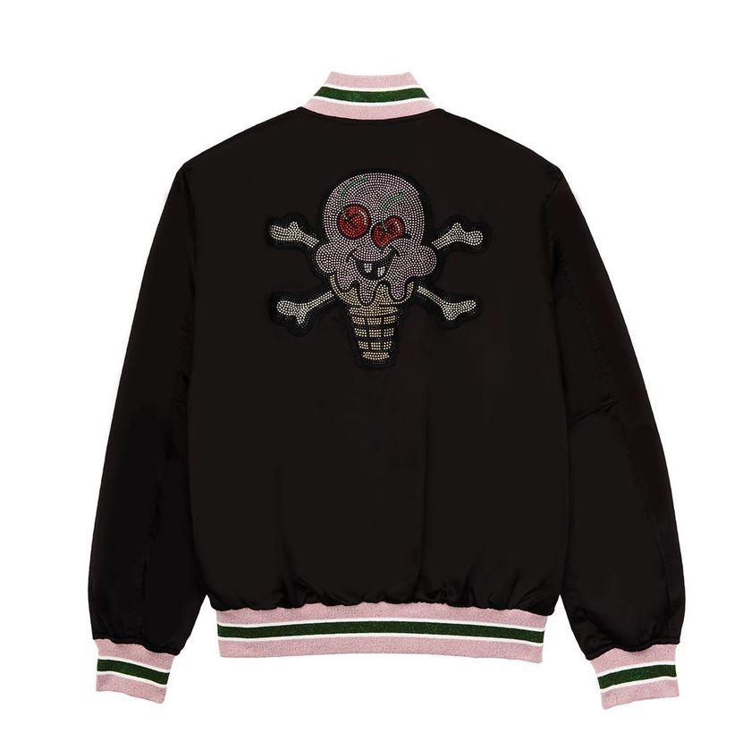 灯芯绒等独特材质的加入,搭配极具辨识度的哥特字体 logo 印花以及多色水钻打造的彩色冰淇淋骷髅印花,让这一系列质感丰富,趣味性也很强。