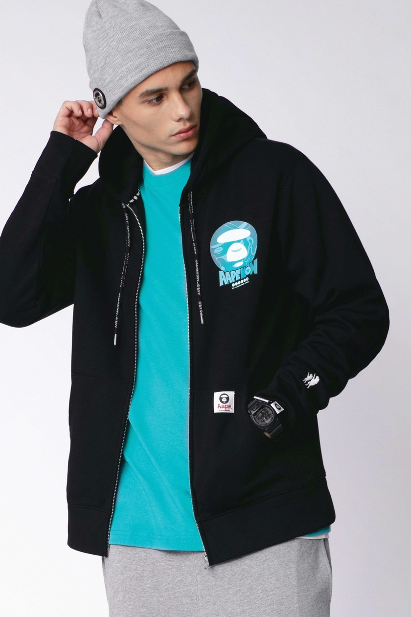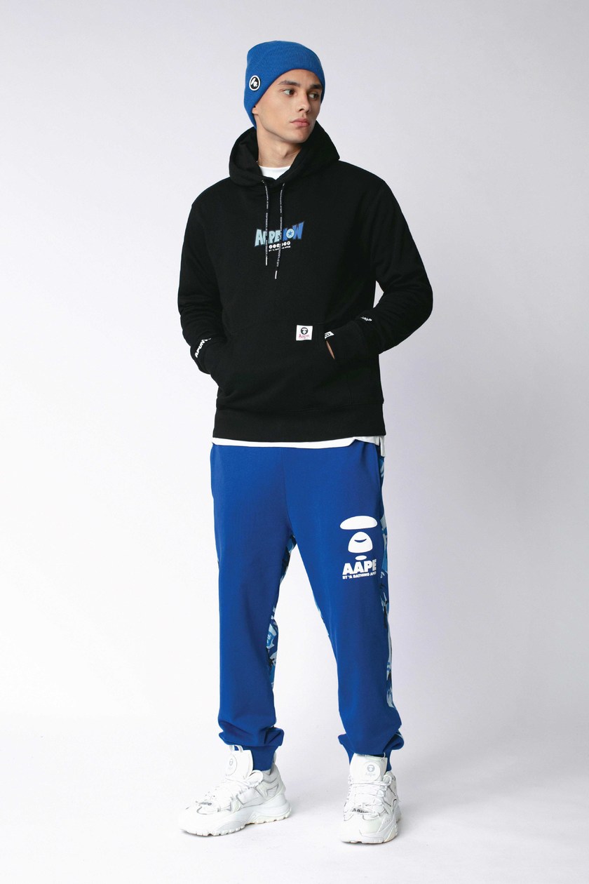 这次设计元素除了悟空及弗利沙,还加入了贝吉塔和悟吉塔。AAPE 经典迷彩和 MOON FACE 图案与剧中人物发色造型相融 ,搭配蕴藏龙珠细节的“AAPE NOW” slogan ,辨识度极强。