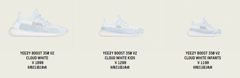 Yeezy 350 V2“Cloud White” 将于 9 月 21 日上午 10 点正式发售,而 Yeezy 350 V2 “Citrin” 配色则到 9 月 23 日上午 10 点才正式发售,感兴趣的朋友不要错过了~