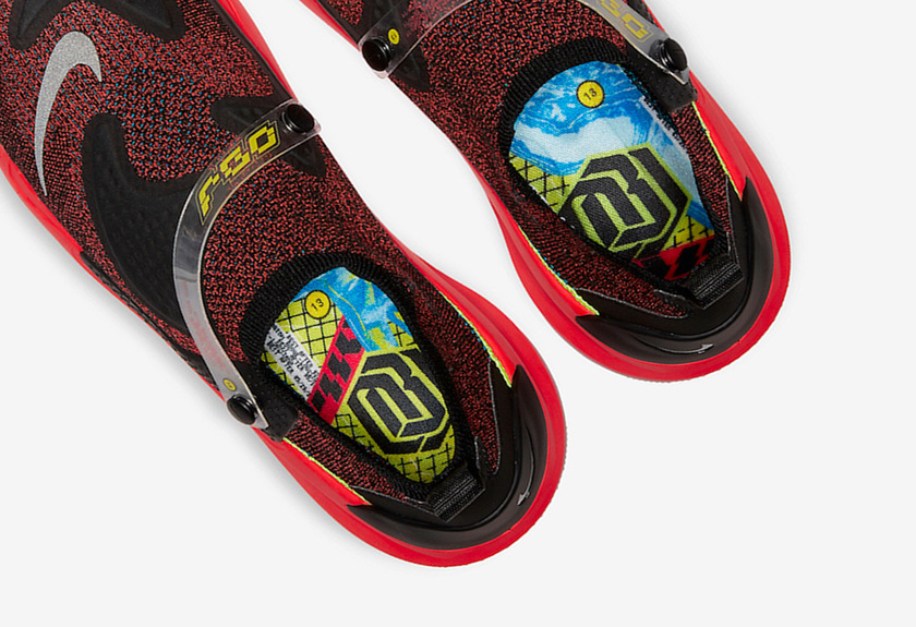 这次联名共有两款配色,一款以黑红为主打,另一款以灰色为主打。两款配色都采用 Flyknit 编织鞋面呈现,搭配透明绑带设计,简约又时尚。