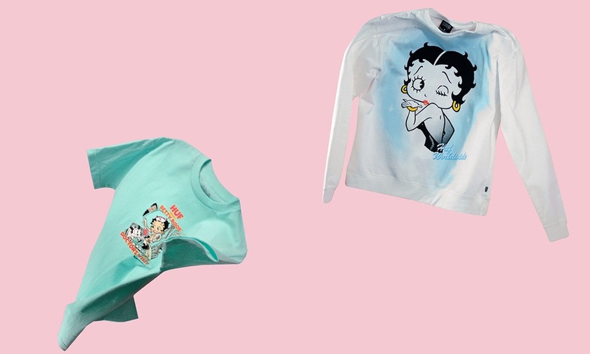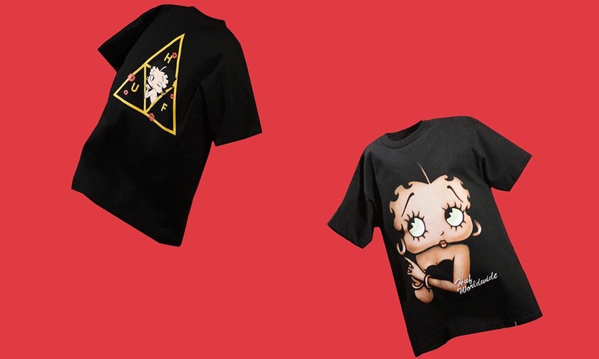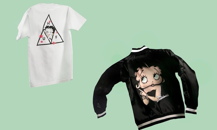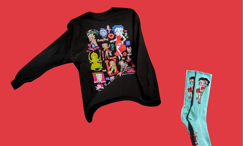 于 1930 年诞生的美国经典卡通明星 Betty Boop ,一直以来都广受卡通迷们的喜爱,近年来她更是成了街头潮流圈的宠儿,多个品牌为其推出了联名系列。此番 HUF 也携手 Betty Boop 带来了胶囊系列。
