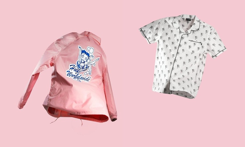 系列包括海魂 T 恤、睡衣式衬衫、复古运动夹克、袜款及相关配件在内的丰富单品。在设计上将 Betty Boop 充满矛盾的经典形象与 HUF 美风十足的优质剪裁结合,潮趣十足。