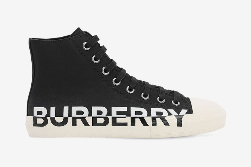 高帮采用黑色鞋身搭配白色鞋底,超大号上白下黑 “BURBERRY” 徽标点缀于鞋侧,大胆又吸睛。