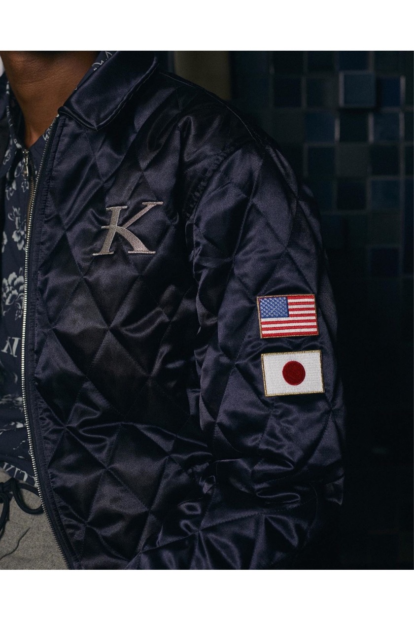 系列包括卫衣、夹克、半拉链衬衫及帽饰等在内的 17 件单品。日式风味的樱花、锦鲤与烫金刺绣等设计元素和绗缝技艺的注入,让整个系列充满了奢华感。