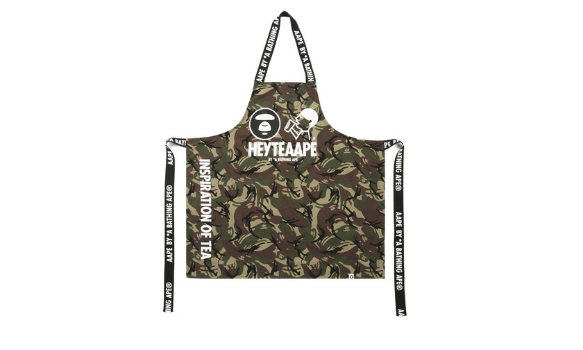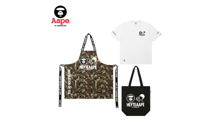 AAPE 方面则推出了 HEYTEAAPE 限定套装,套装包括 HEYTEAAPE 联名帆布袋、联名T恤、联名围裙各一件,仅在上海 AAPE 门店及 AAPE 电商平台少量发售。两方的粉丝可以关注一下不要错过了~
