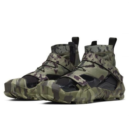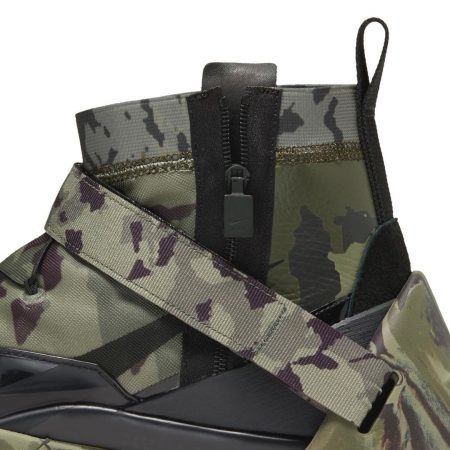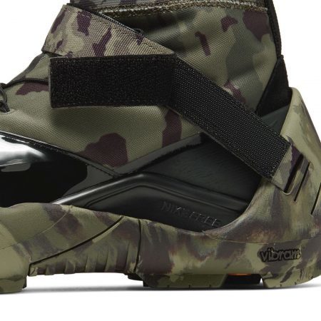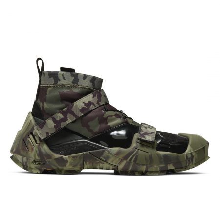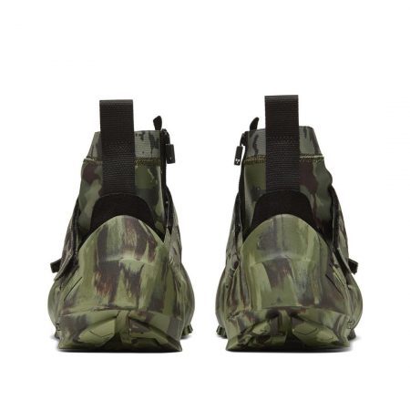 新配色鞋身以极具军事气息的绿色陆战迷彩贯穿 vibram 可拆大底和鞋身,并辅以黑色细节点缀。而鞋侧拉链、绑带以及皮革、编织材质的加持,赋予了整体浓郁的机能气质。