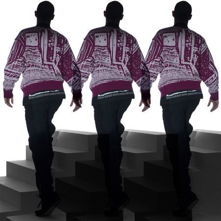 而其他具有辨识度的单品包括数码赛博风棒球衫、毛衣单品以及华夫格绒面材质打造的半拉链卫衣。