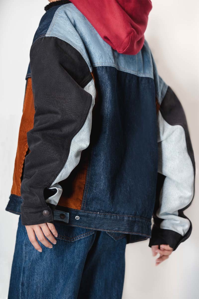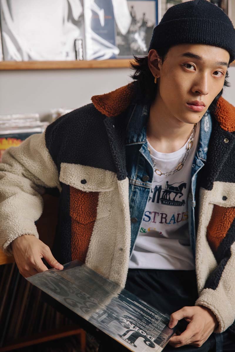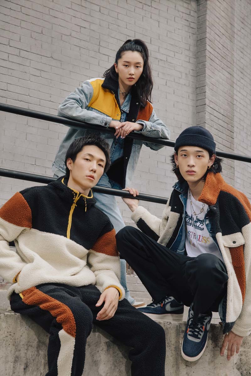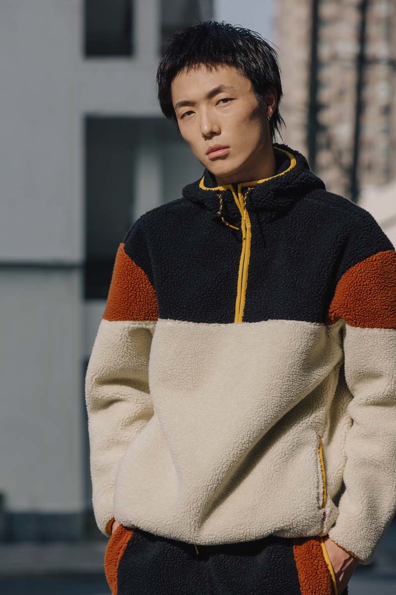 除此以外,两个品牌还带来了一系列配套服饰,包括仿羊羔绒连帽衫、牛仔夹克、仿羊羔绒夹克等,在设计上也采用了拼接质感呈现,上身很有格调。