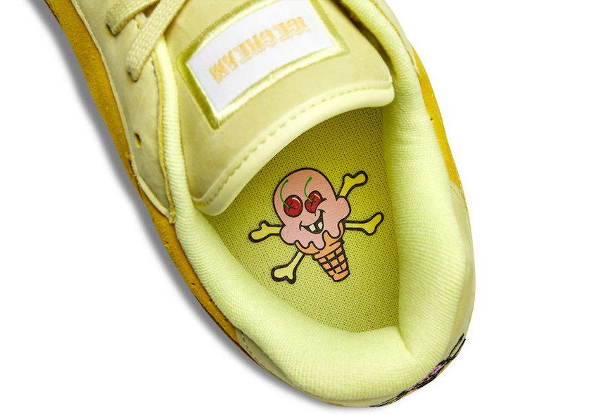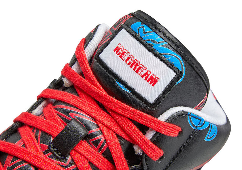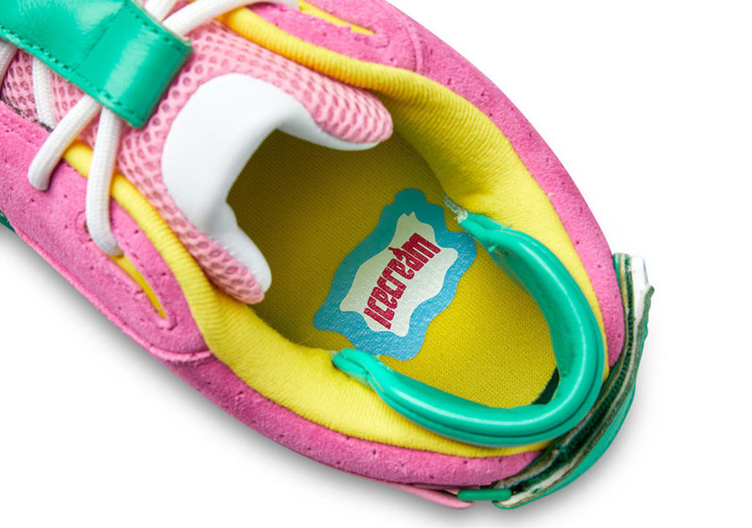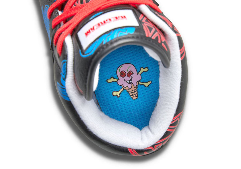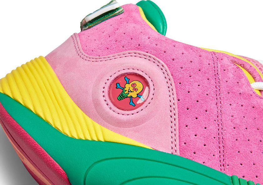第一款联名 Answer 5 配色十分大胆,以粉色、亮黄色以及绿色为主调演绎。搞怪冰淇淋骷髅图案,特殊吊牌以及鞋垫上的 icecream 字样的注入,让整款配色异常活泼,看了童心泛滥。