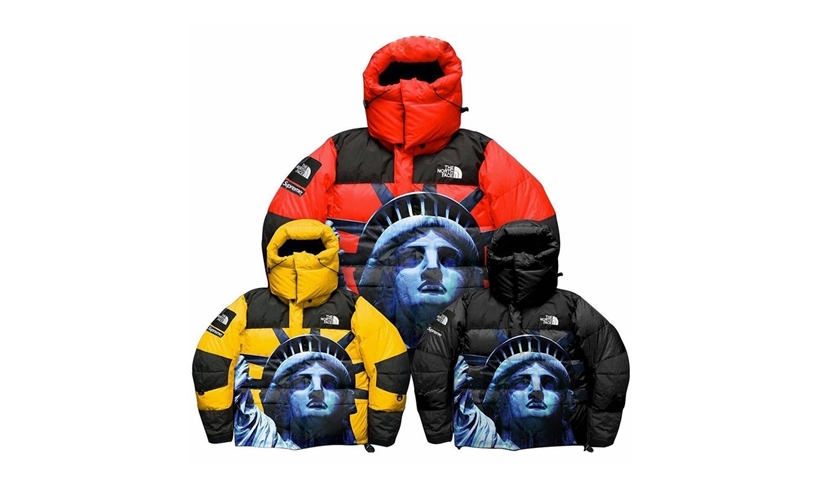 近期一直不断有消息释出的 Supreme 与 THE NORTH FACE 联名,此番又曝光了新的羽绒服单品。新单品以自由女神像作为设计主题呈现,一共有黑红黄三款配色。醒目的印花加上出色的版型设计,这款联名预计又将成为爆款。目前发售信息尚未释出,先欣赏一下情报账号 @ovrnundr.io 释出的实物美照吧~