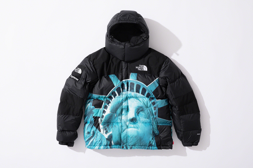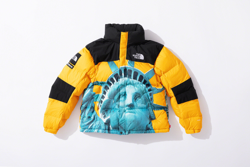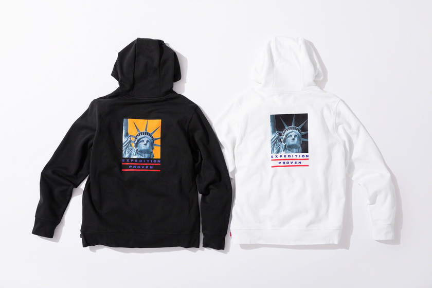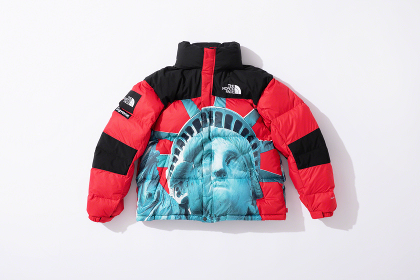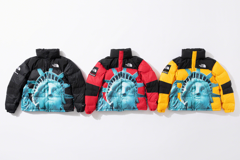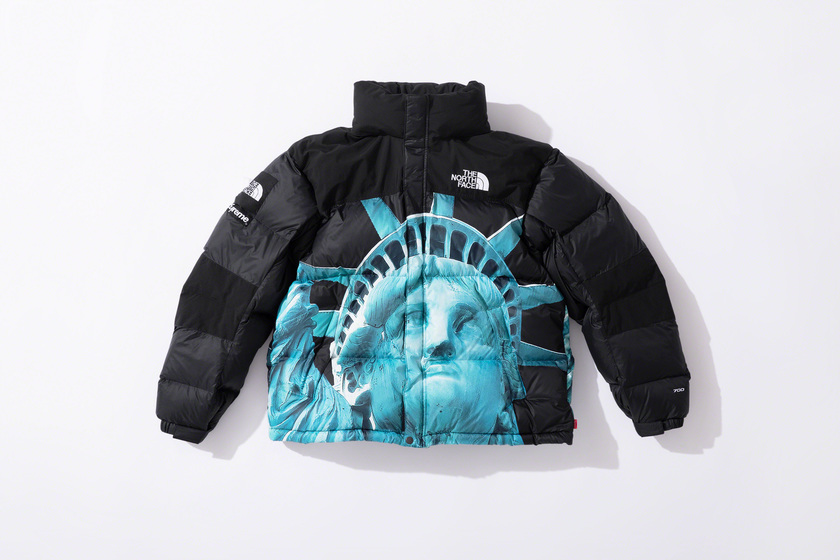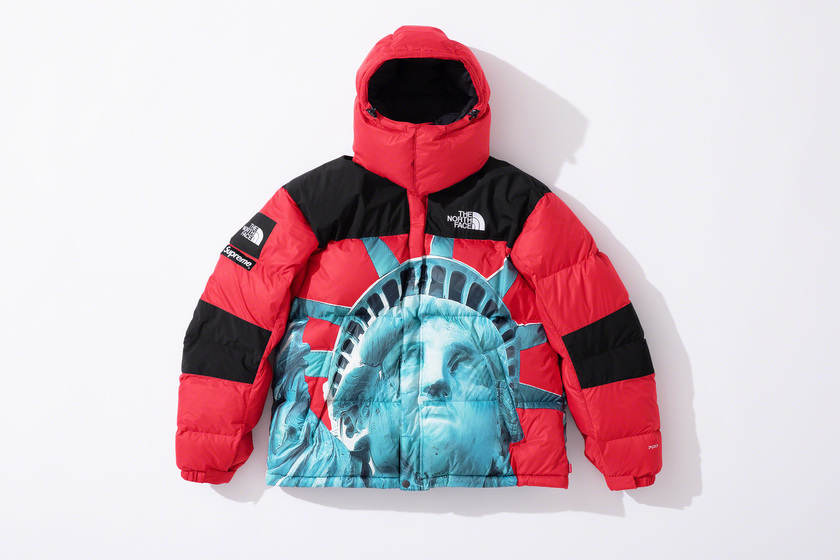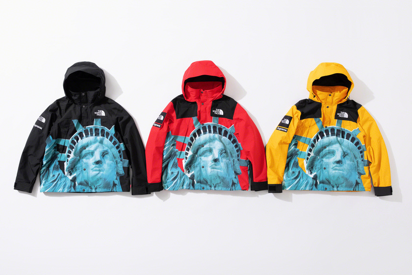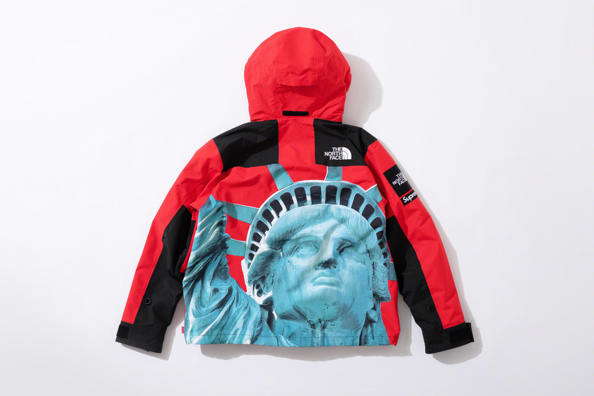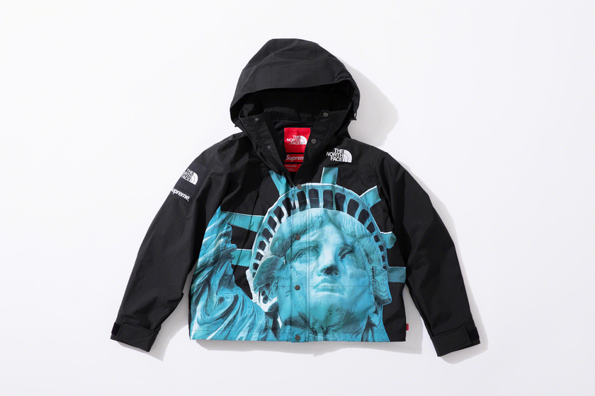 作为潮流爱好者每季必追联名,Supreme x The North Face 系列这次也没让大家失望,作品依然高端抢眼。以美国自由女神像为主打印花,双方本次带来了羽绒外套、登山夹克、连帽卫衣、T恤和防水背包共计 5 款单品。