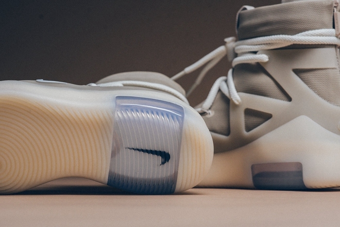 细节方面,同色系鞋带、 Swoosh 呈现和谐的外观,专属吊牌及 Fear of God 点缀的弹性锁扣,彰显联名身份。