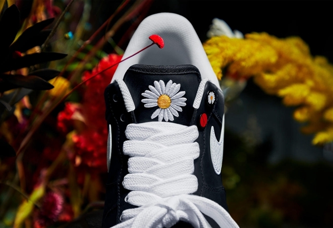而鞋舌 PEACEMINUSONE 标志性小雏菊刺绣与鞋带扣 PEACEMINUSONE logo ,则极具辨识度,与内衬 logo 一起,彰显了联名身份。