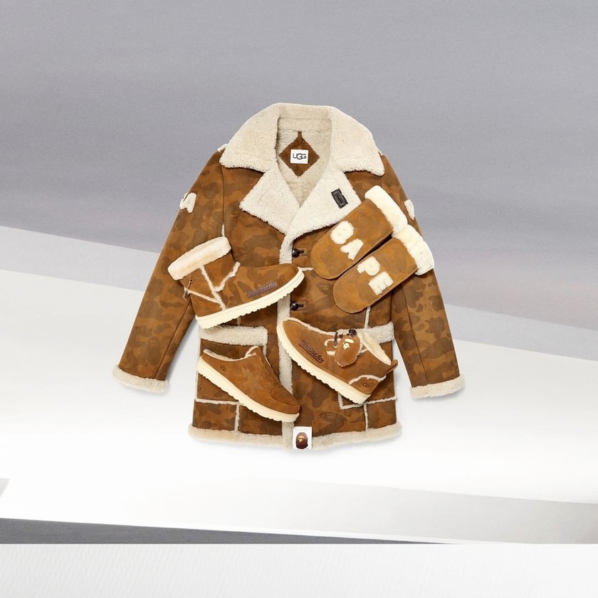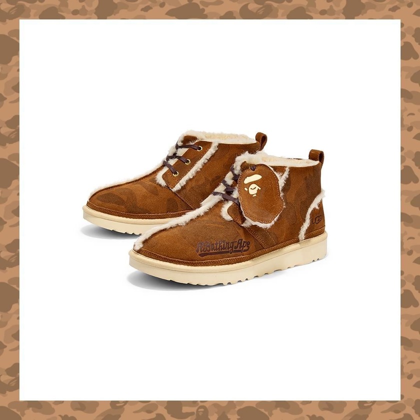 冬季将临,日本知名潮流设计单位 A BATHING APE 与 UGG 释出了时隔已久的联乘第二弹。这一系列包括羊毛内里麂皮风衣外套和三款 UGG 雪地靴。卡其色为主调的设计,加入 BAPE 标志性猿人迷彩,辨识度加强。“A BATHING APE”字样金属吊牌与鞋身烫印细节点缀,则彰显了不凡身份,吸引力暴增。据悉,UGG x A BATHING APE 联乘系列第二弹单品将于 11 月 9 日正式发布,期待很久的粉丝们关注一下。