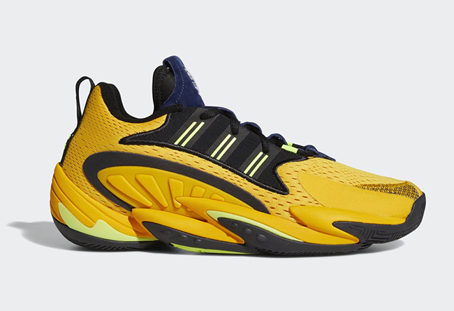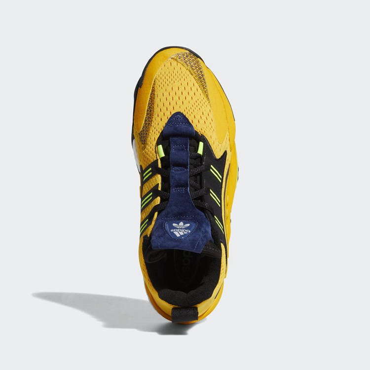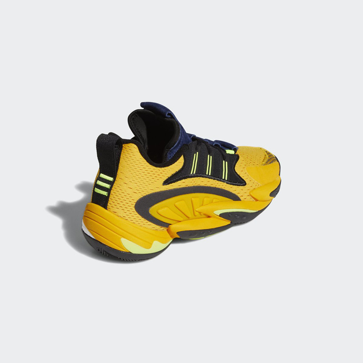 新配色整体采用亮黄色渲染,鞋舌、后跟及大底处以黑色点缀,增强视觉冲击。注入了 Boost 缓震科技的犀利天足造型,在脚感上有着出色的表现,无论是出街上脚还是实战都非常合适。