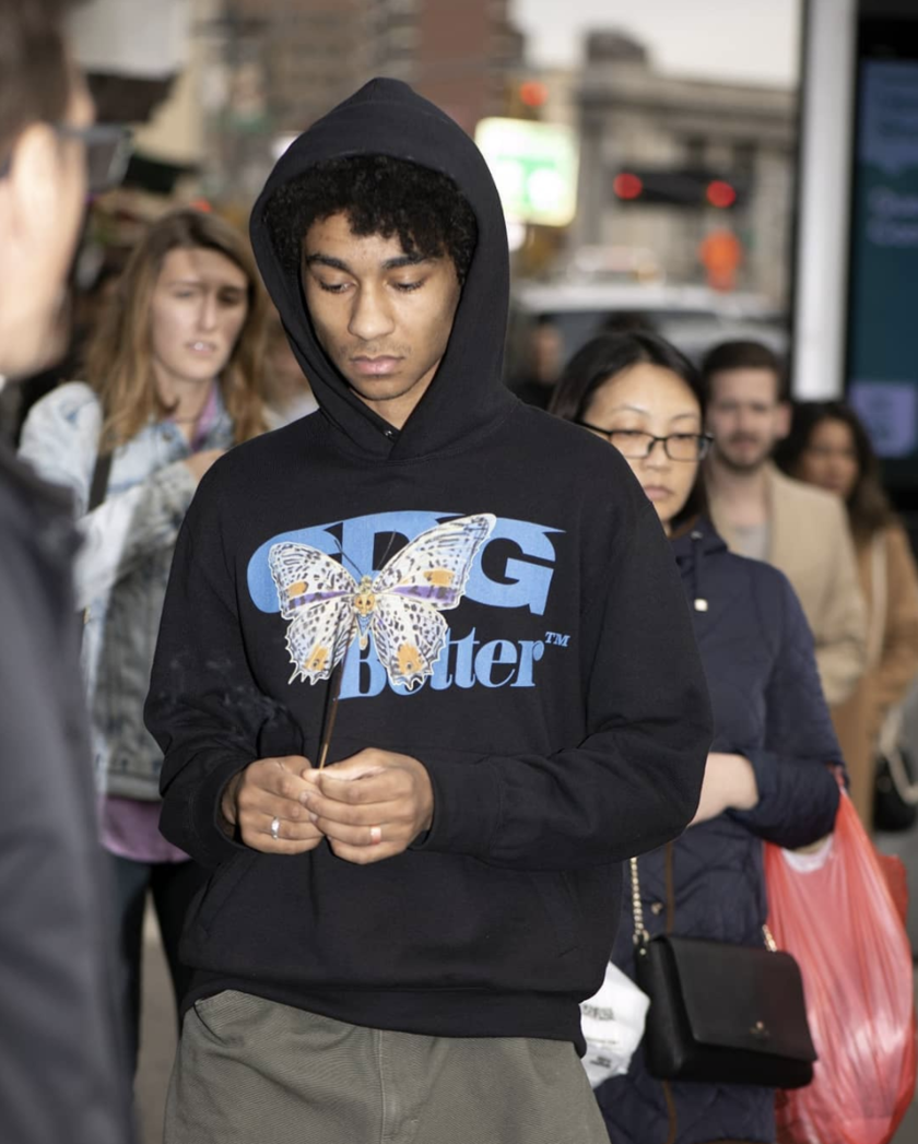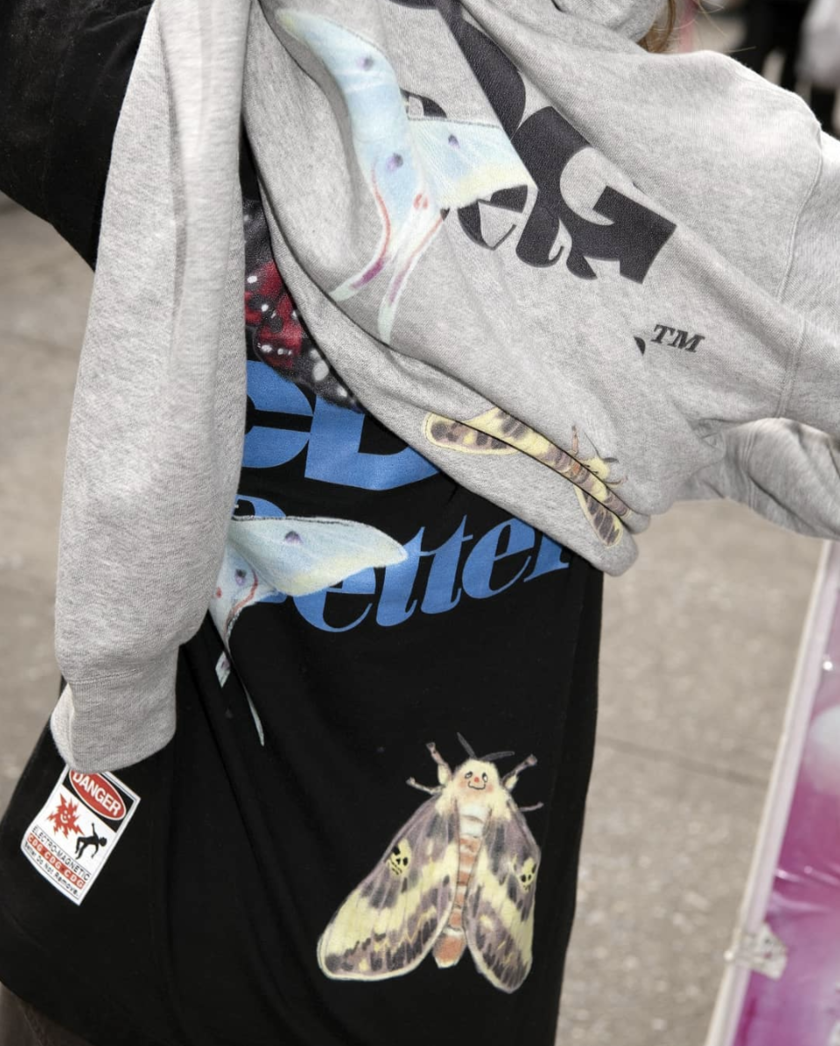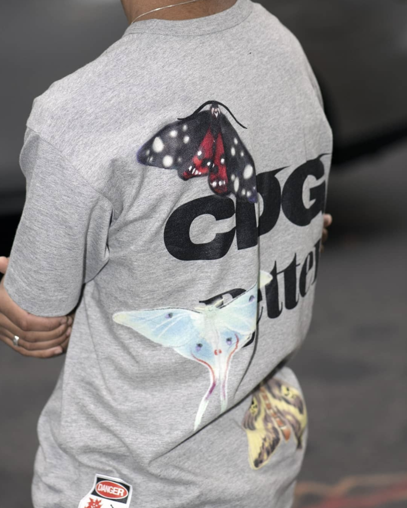 创意礼品店 Better Gift Shop 最近与川久保玲的 COMME des GARÇONS CDG 合作打造了一个胶囊系列。系列涵盖了 T-Shirt 和帽衫等单品,在配色上以黑色和灰色为主调,蝴蝶印花元素融入 CDG 一贯的简约风格,呈现出独具时尚韵味的视觉效果。目前这个系列已在 Dover Street Market 店铺限量发售,喜欢的朋友可以关注一下,选择渠道入手哦。