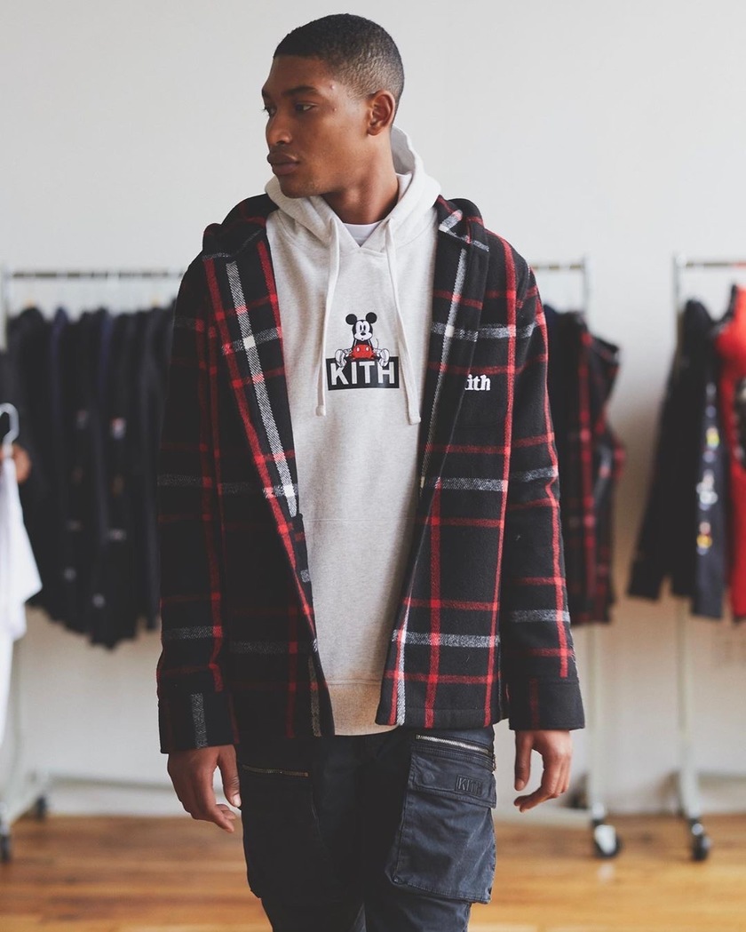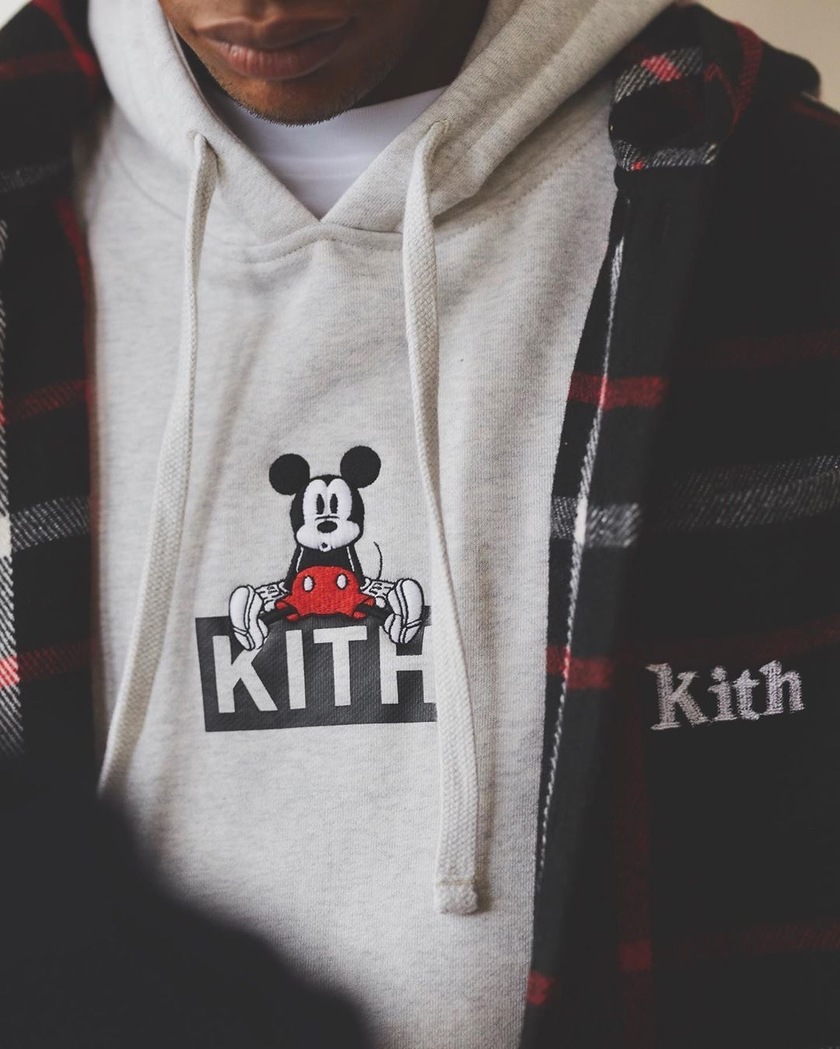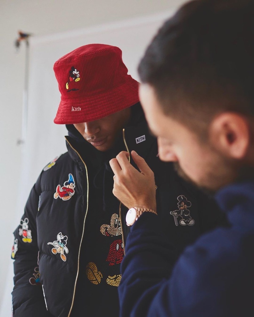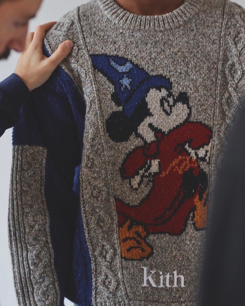 除了与 CONVERSE 打造的三方联名 Chuck 70 之外, KITH x Disney 的服饰系列包括了羽绒服、帽衫、毛衣、外套、丹宁棒球衫等多种款式。高萌米奇印花的注入,让这一系列趣味十足。
