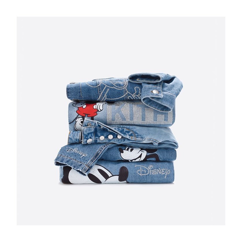 以丹宁材质+水钻呈现 Mickey 20 年代、灯芯绒代表 Mickey 30 年代直到 90 年代。