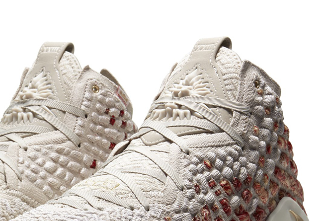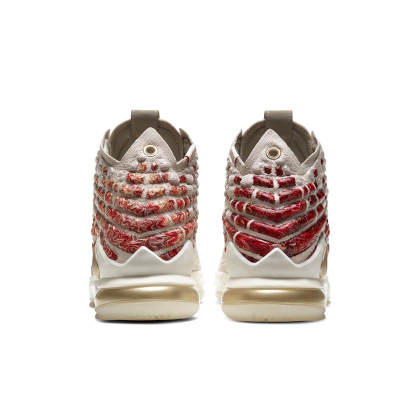 去年为了帮勒布朗·詹姆斯准备HFR时装秀,Nike特别为其打造了一款NFR联名的LeBron 16,今年仍然按照惯例为全新一代签名鞋LeBron 17带来HFR的相关联名鞋款。鞋身主要采用简约百搭的米白色,在后半部分搭配金色和红色热熔花纹点缀尽显精美。