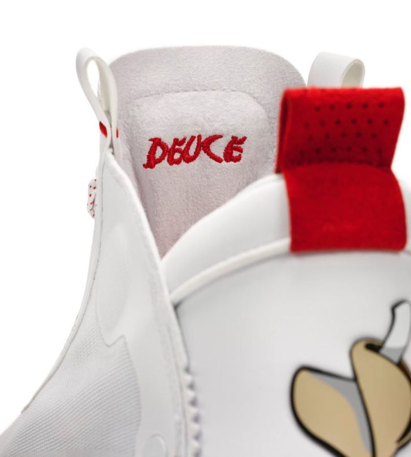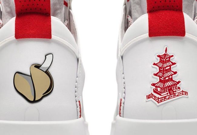 另一款灵感来源于中国,经典红白色调搭配后跟传统建筑图案,致敬每年夏季的中国行活动。