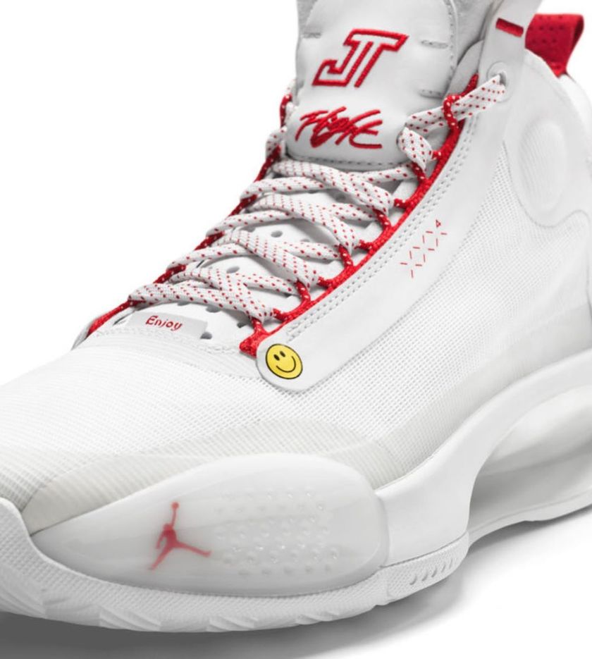 已经拥有多款 PE 配色的杰森·塔图姆,继绿色版和蓝色版 Air Jordan 34 PE 战靴曝光后,近日又上脚了两款超级抢眼的专属 Air Jordan 34 PE 。