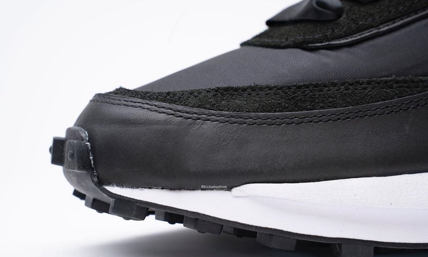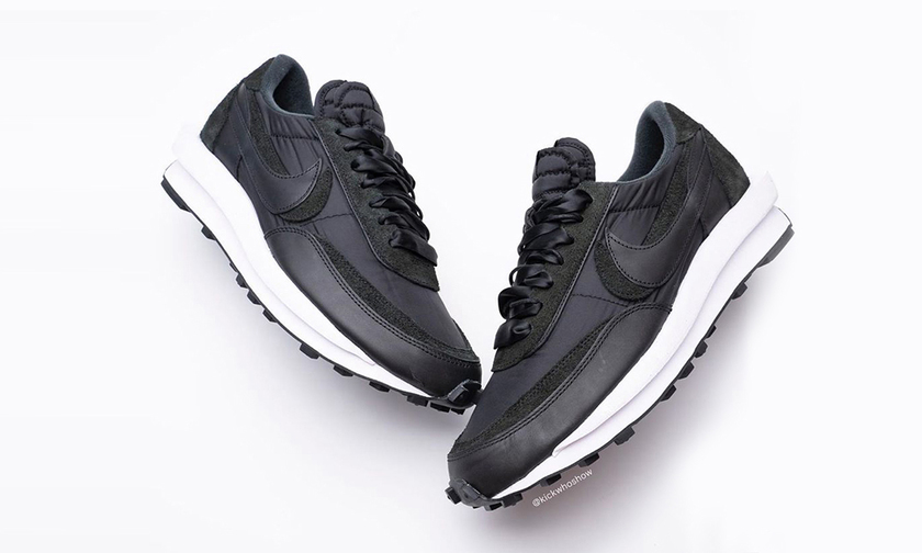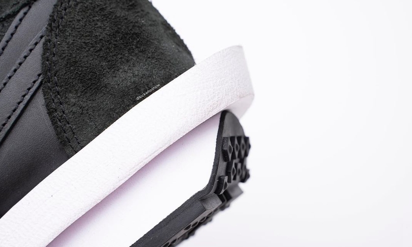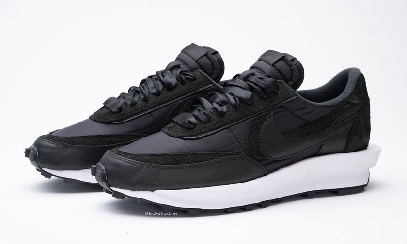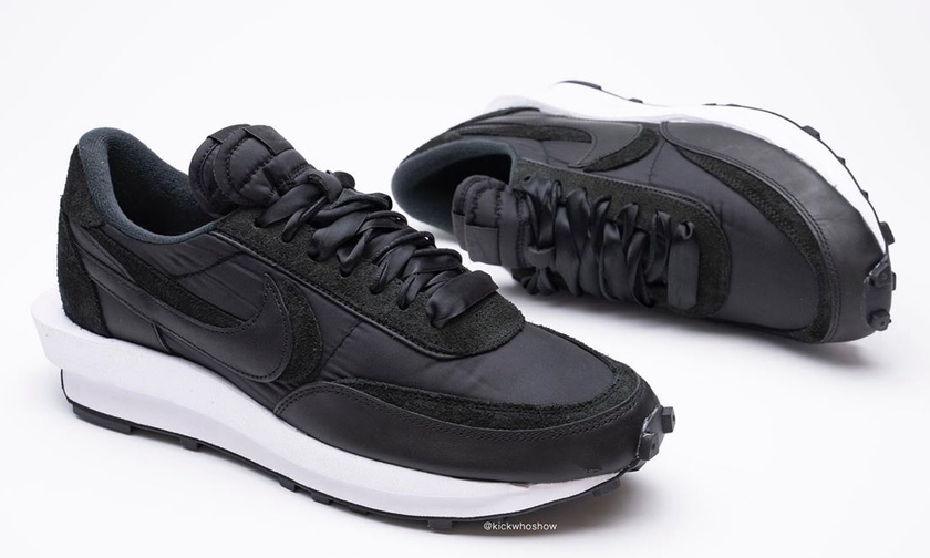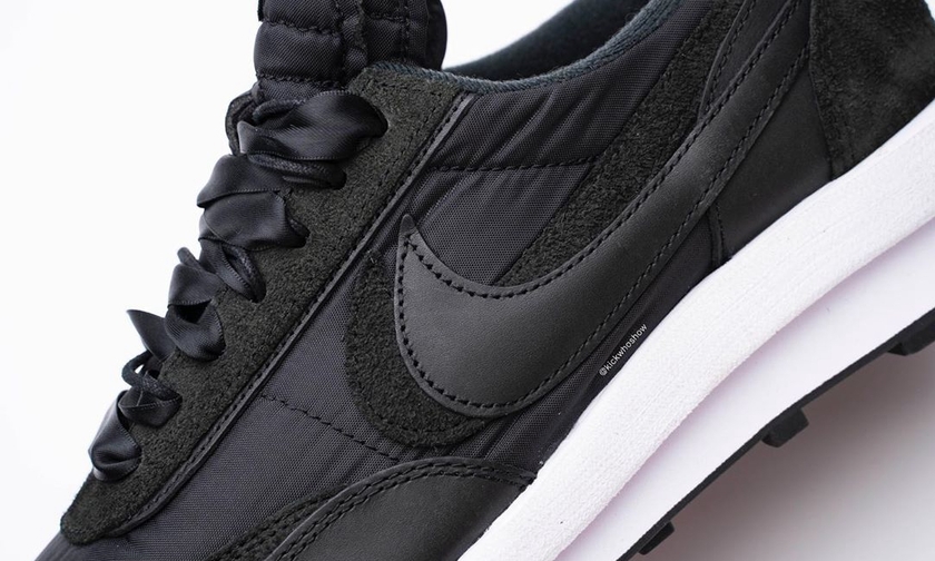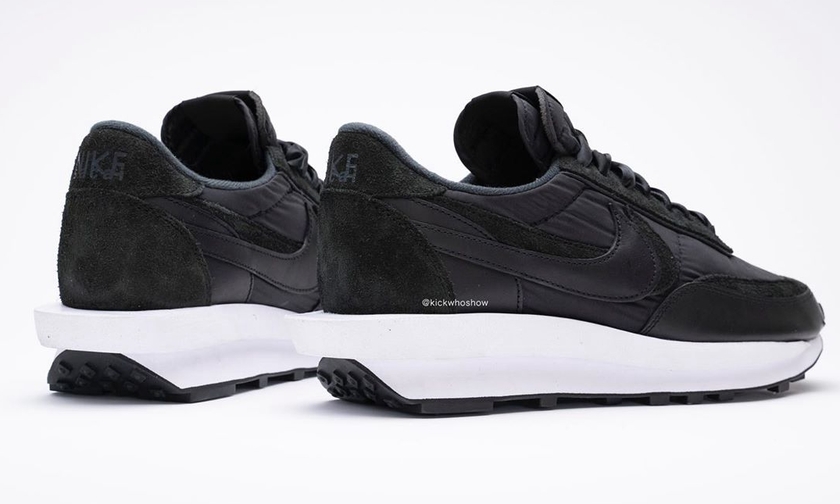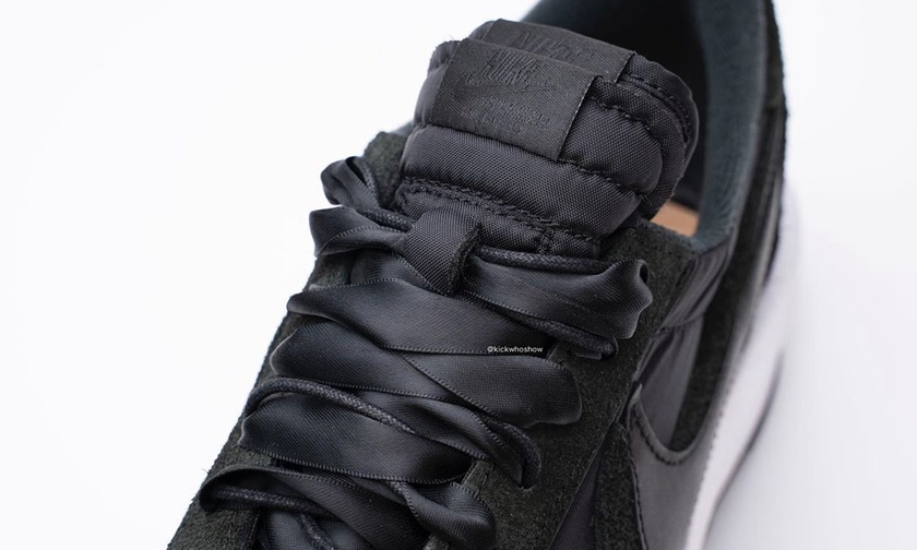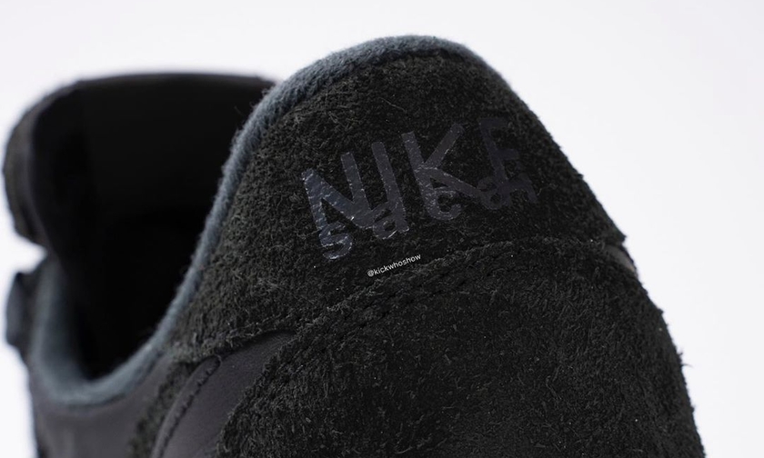这款全新配色以一袭纯黑色装扮示人,延续 Sacai x Nike 联名标志性设计的双鞋舌,双 Swoosh 细节依旧引人注目。