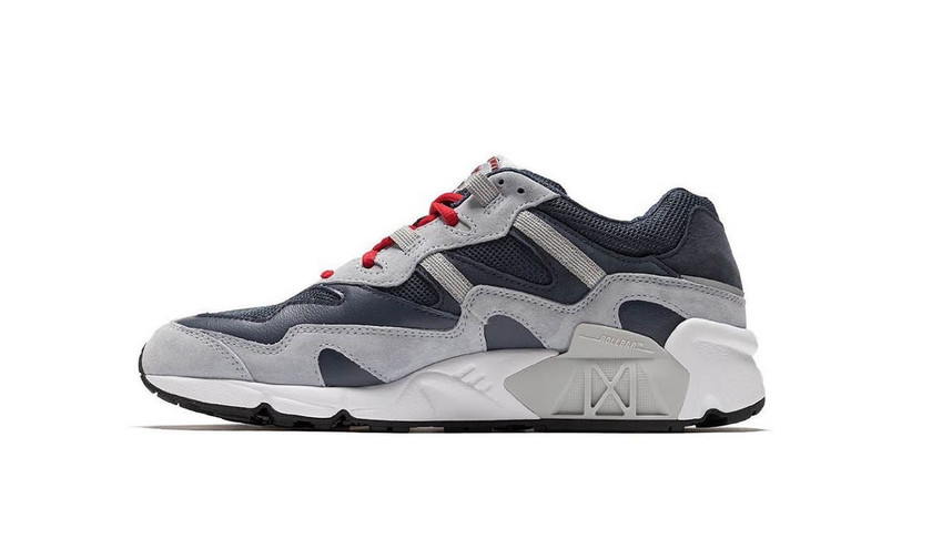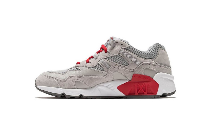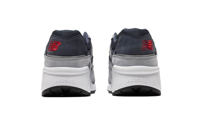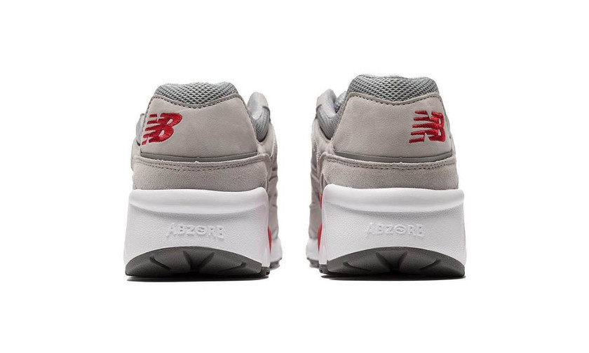 系列共有两款配色,一款延续了早先 990v3 上采用的颜色搭配,以灰蓝和红色主打。麂皮、皮革、网布的拼接组合,呈现极佳的层次感。
