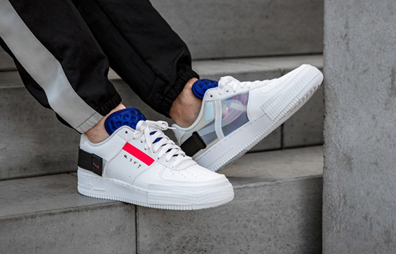 整体鞋款的设计都非常有辨识度,蓝色鞋舌有凹印点缀,鞋身两侧则加入透明蝉翼鞋面的设计,拉拽鞋带的红线也能清晰看到,后跟则还有一个可拉拽的黑色松紧带,每一处设计都相当别致。我们注意鞋款后跟Swoosh也是细长型的设计,也暗示着着整款鞋型原本就是一个不会发售的草稿版本。目前售价在750元上下,作为一款设计丰富的AF1来说绝对有相当的性价比。
