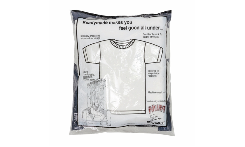 本次别注以经典白色 T 恤作为蓝本打造,《阿基拉》漫画原画的注入让其充满了艺术感和辨识度。2017年,Supreme 曾将《阿基拉》漫画应用于服装设计,本次 READYMADE 再次应用《阿基拉》漫画,对漫画迷还说是不可错过的“福利”。