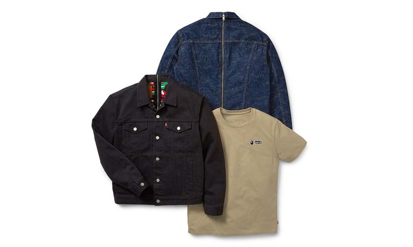 自曝光以来就备受潮流爱好者关注的 Levi’s x A BATHING APE 重磅联名系列,近日终于正式公布了联乘单品。单品包括经典设计 Type III Trucker Jacket 和 T-Shirt 。