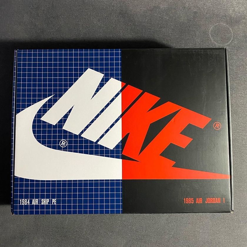 他晒出的是 Jordan 套装, Air Ship PE 和 Air Jordan 1 。很多朋友只知道 Air Jordan 1 却并不知道 Air Ship ,其实要论起来 Air Ship 的“资历”比 Air Jordan 1 还“老”。1984 年“生”的 Air Ship 是 Air Jordan 1 的改良前版本,乔丹在 Nike 的第一年,穿的都是不同颜色的 Air Ship 。